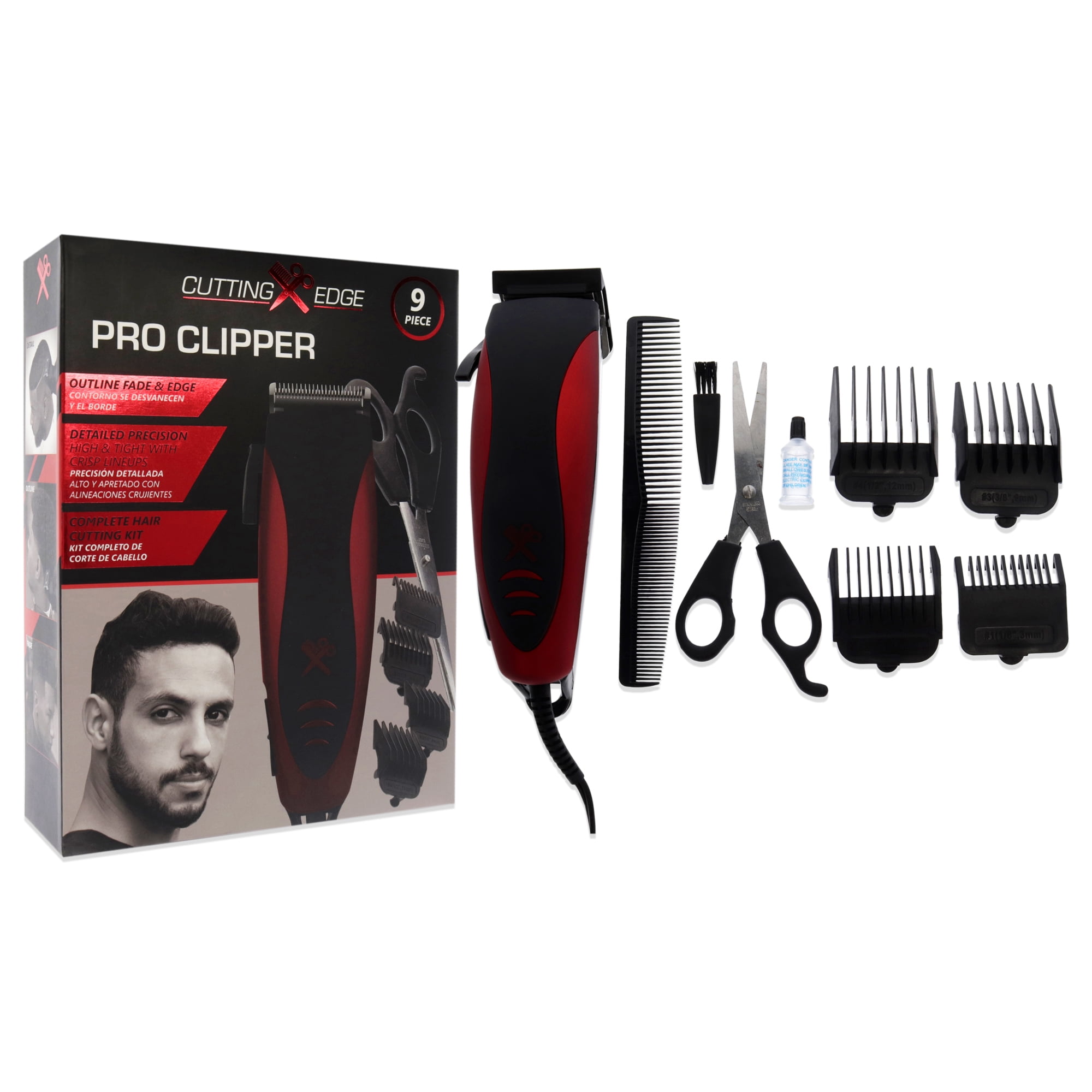Barbasol Cutting Edge Pro Clipper Red 9 Pc Set Hair Clipper Scissors 4 Guide Combs 3mm 6mm 9mm 12mm Large Comb Blade Oil And Cleaning Walmart Com